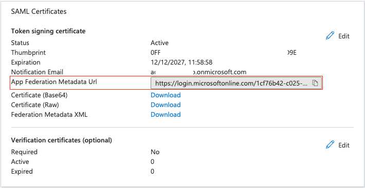 Replace the dummy URL by pasting the Entra ID application Federation Metadata URL that was copied in the previous step.
